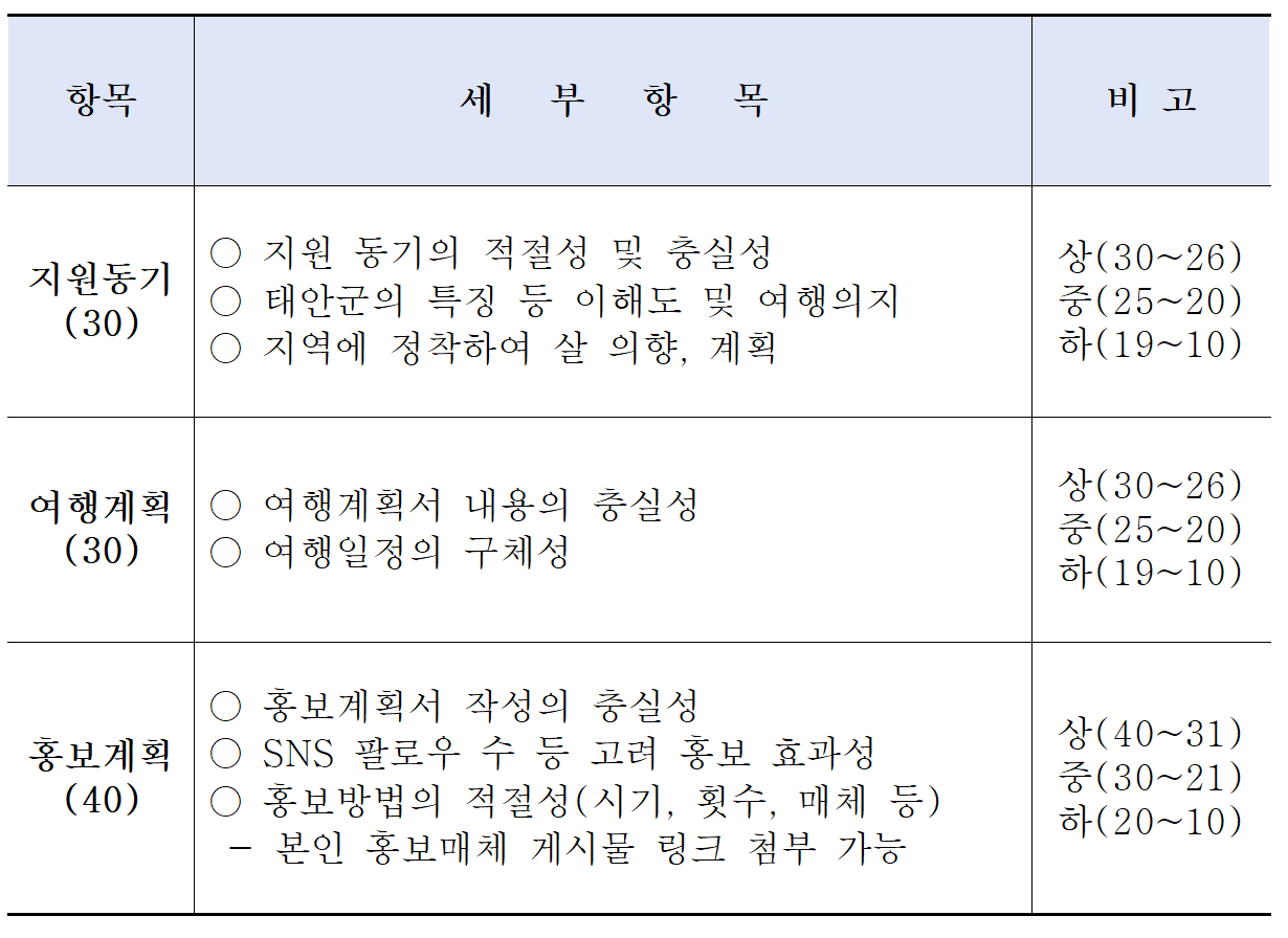 다. 참여대상 : 충남 거주자를 제외한 태안 여행 희망자 또는 팀