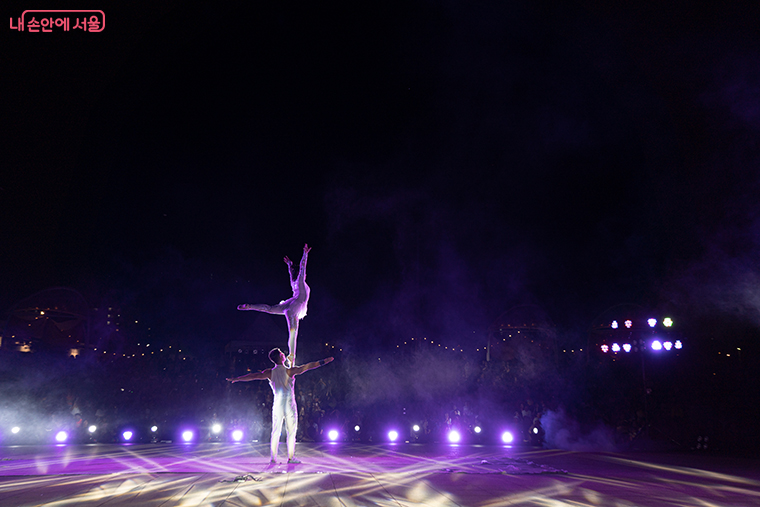 반포한강공원 세빛섬 앞 수변무대에서는 추억의 전통 서커스 한강달빛서커스가 축제의 마무리를 장식합니다.