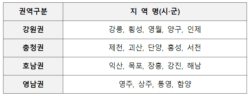 ※ 활동희망지역은 위에 제시된 4대권역 중 1개 권역을 선택하여 그중 최대 3개까지 선택 가능
