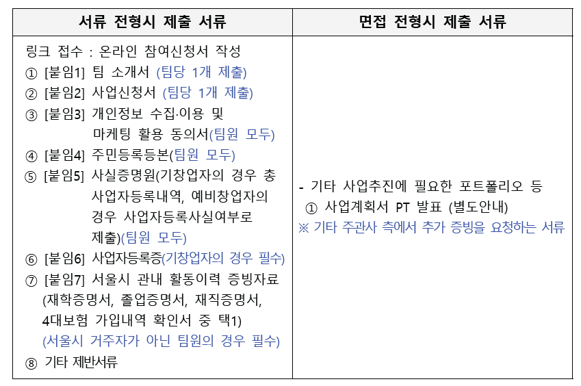 ※ 기창업자 소재지가 서울이 아닌 경우, 서울로 소재지 이전 후 신청 가능 함.